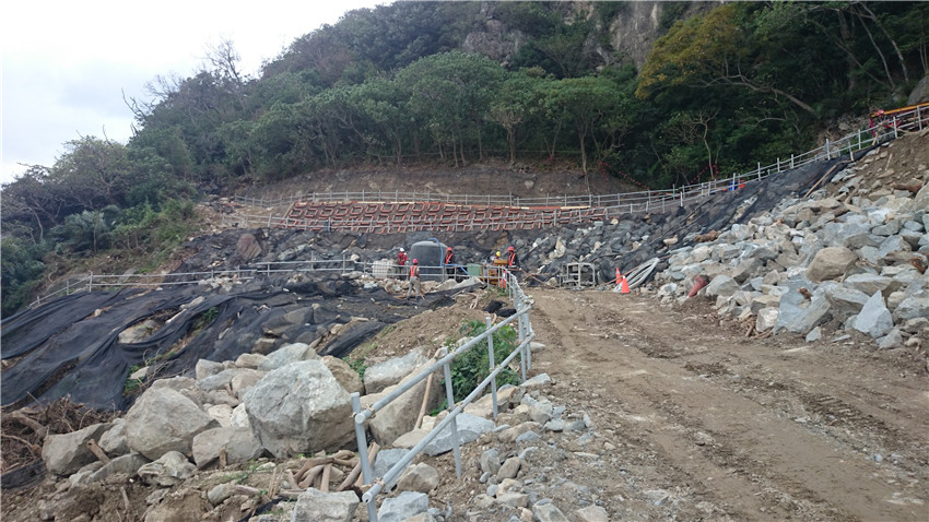 針對仁水隧道與安全疏散通道於隧道開挖前,週邊破碎邊坡岩盤進行固結灌漿。本工作以雙環塞灌漿工法進行低壓滲透地盤改良工作,將硬化劑以低壓滲透或劈裂之方式經雙環塞管灌入地層,填充裂縫或孔隙及固結疏弛土層,藉以強化土層之剪力強度及降低透水性,使地層於灌漿範圍內之強度趨於均勻,兼有固結土層及增加土壤剪力強度與止水性之效果。