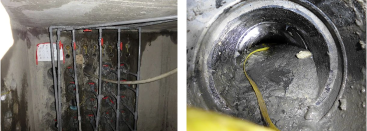 滲漏封堵 :某工業區採用預埋PVC管路進行各類纜線連通,並於管路間設置人孔維修室以利施工及各項維護。於使用一段時間後發現部分預埋管路出現滲漏水現象,導致人孔豎井嚴重淹水無法正常使用。為避免造成損害擴大,維護單位特委託專業廠商擬定治理方案,並於審核通過後交付執行。