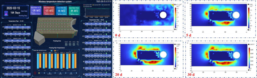 Through the innovative localized freezing technique using long and short freezing pipes, combined with safety analysis based on monitoring data feedback and a digital twin model, this project achieved effective earth-retaining and water-sealing performance with a longitudinal effective frozen length of 3.5 m at the tunnel collapse sealing section, an effective frozen thickness of 5.0 m above and below the tunnel, and an effective frozen thickness of 2.4 m on both sides of the tunnel.